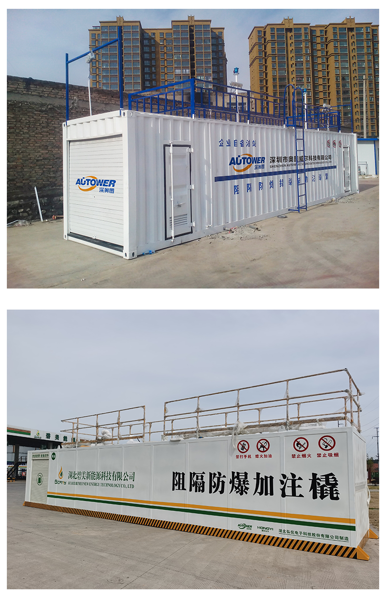 2、雙層罐帶雙防爆抑制系統(tǒng)的撬裝加油站。